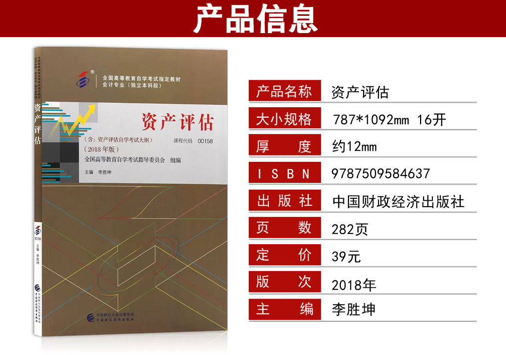 資產(chǎn)評估自考教材課程代碼是00158,是由中國財政經(jīng)濟(jì)出版社出版,出版時間為2018年,由李勝坤主編。本書自帶考試大綱,重點(diǎn)難點(diǎn)分析。自考資產(chǎn)評估00158教材,自考資產(chǎn)評估00158考試大綱,資產(chǎn)評估00158電子版教材,自考資產(chǎn)評估00158歷年真題...